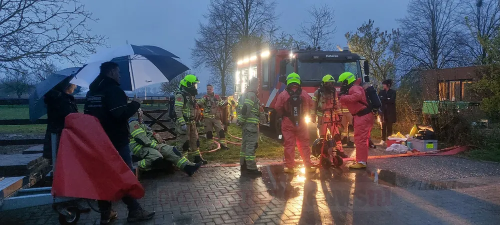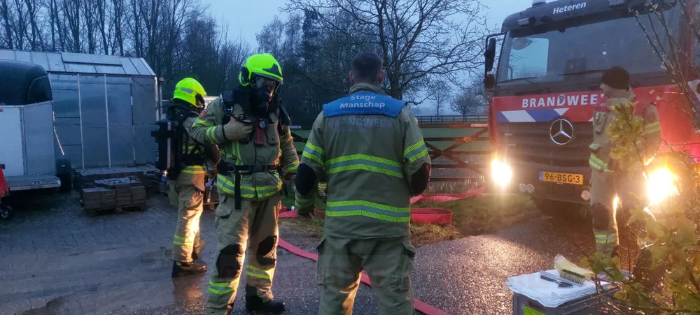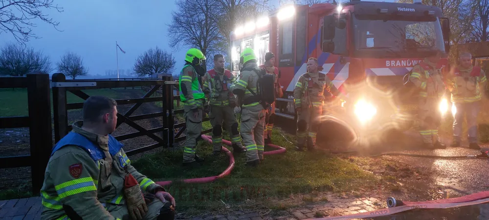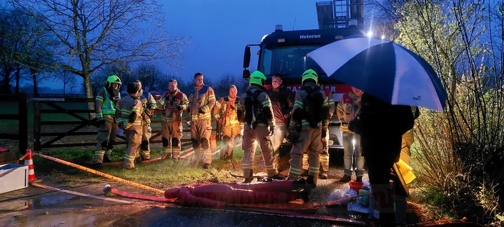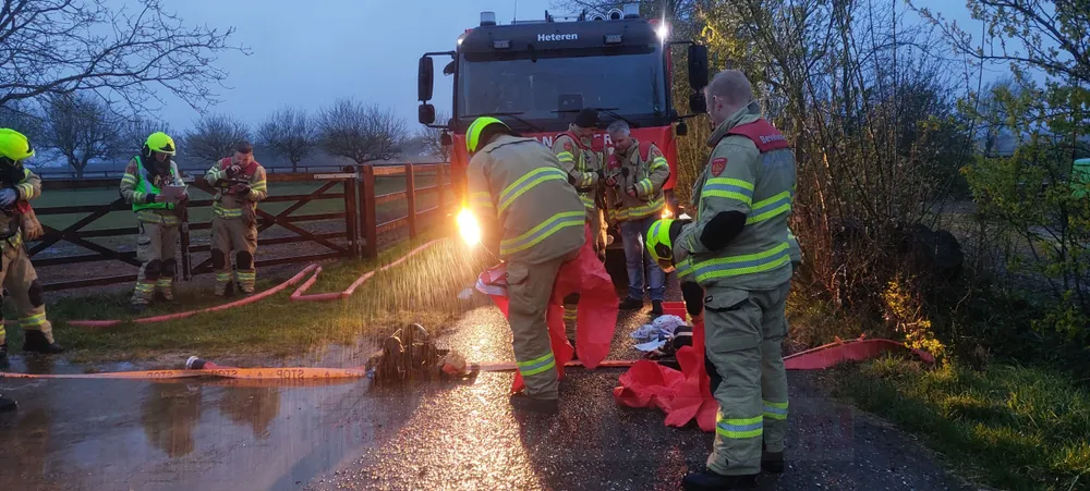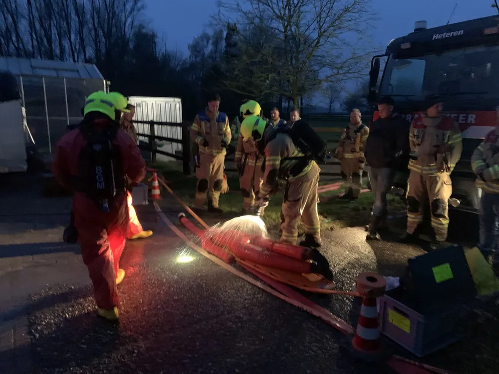 Heteren -Stoeterij Airbornewas maandagavond 4 april het oefenterrein van brandweer Heteren. Door regelmatig scenario's te oefenen blijven de manschappen alert en de skills up-to-date. Burgemeester Patricia Hoytink-Roubos keek vol belangstelling toe.