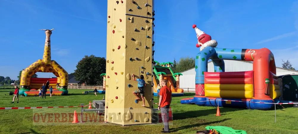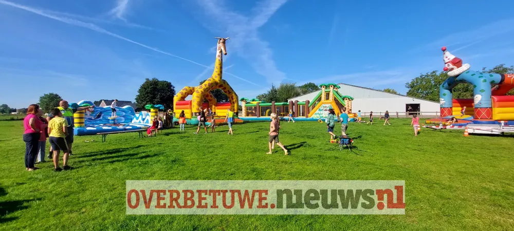 Springkussens, stormbaan, sweeper, multifun, skelterbaan, pannavelden en brood gebakken. Clowns met poppenkast, Djembe, Keet’s kinderboerderij uit Heteren. Als ook nog boerderij-ijs van Peek aanwezig is kan de week niet meer stuk.