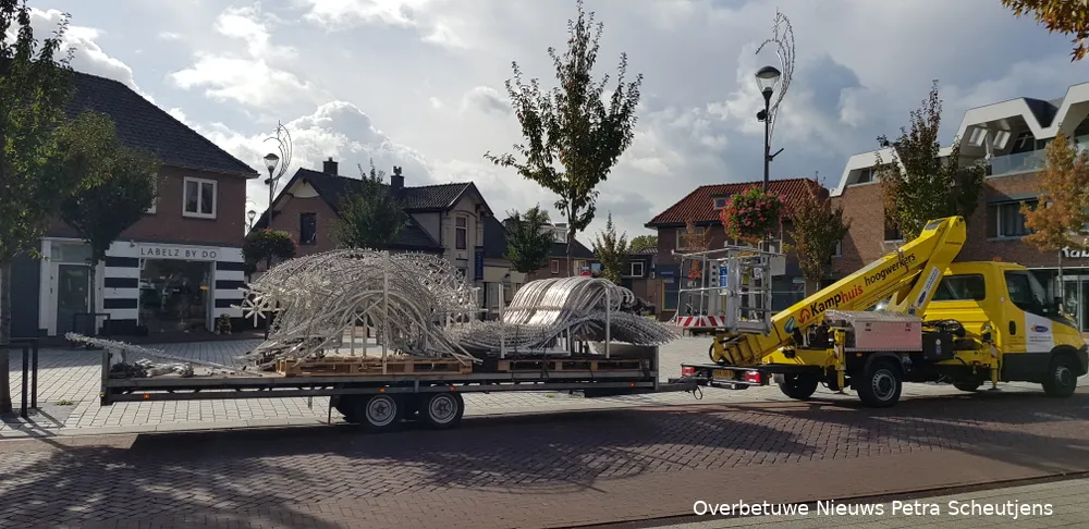 Elst is dit jaar vroeg in kerststemming. Vrijdag 11 oktober zijn de kerstlampen in het centrum opgehangen.