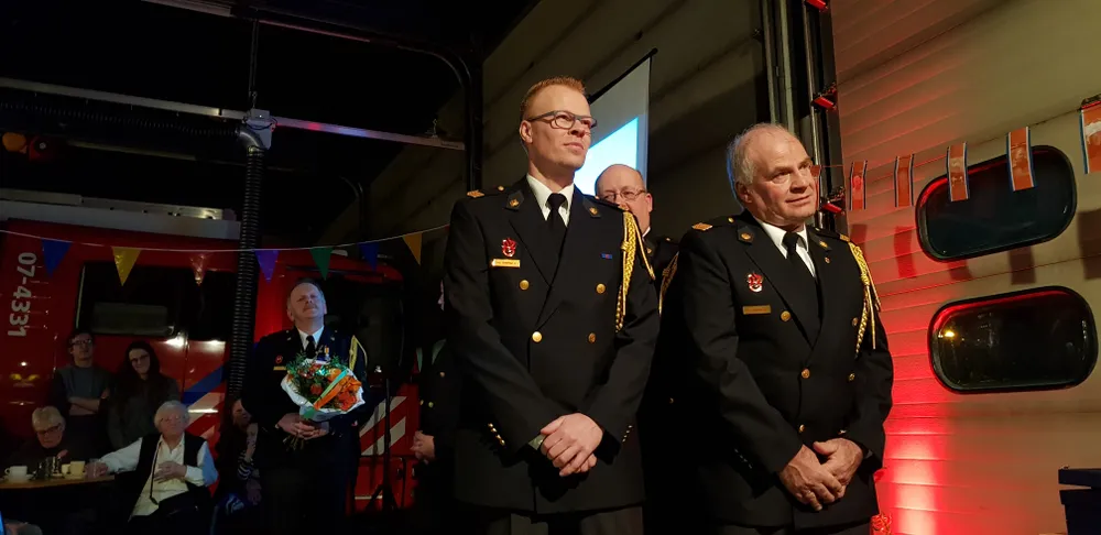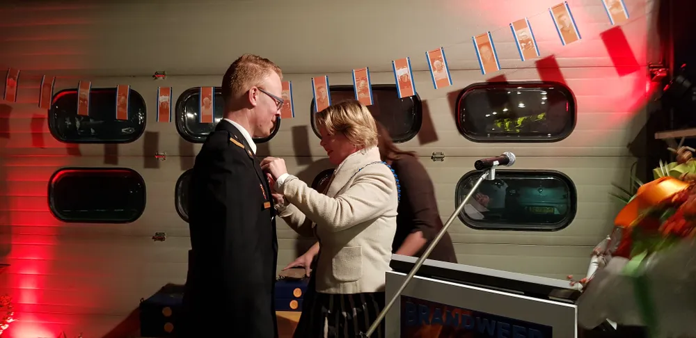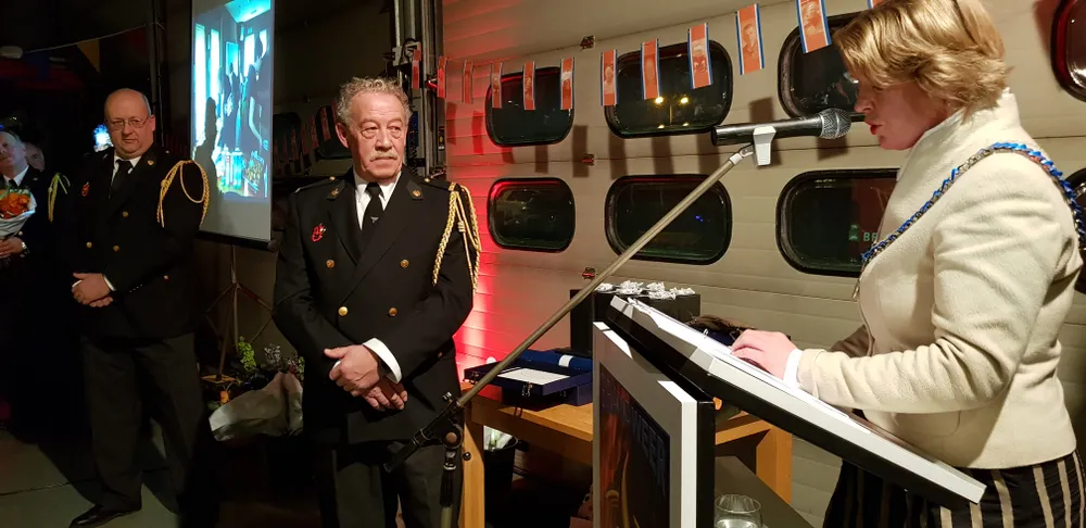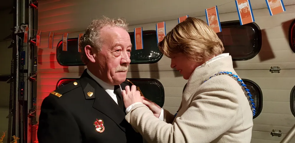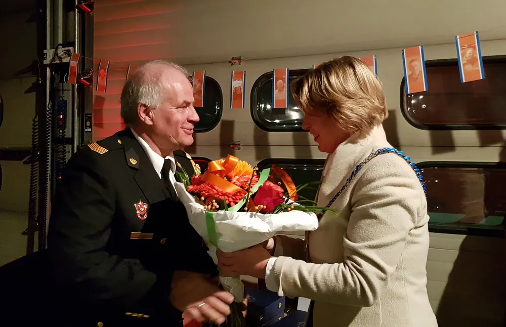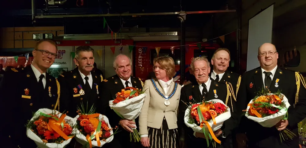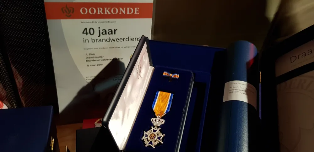 De heer Ap Kruk (40 jaar actief) (hij kreeg een brandweer-onderscheiding voor 40 jaar dienst en een Koninklijke Onderscheiding)