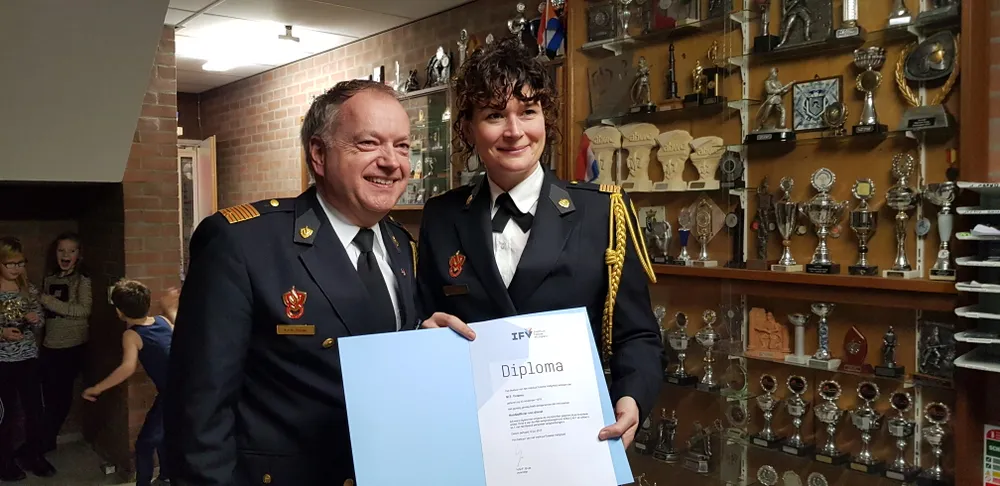 Diezelfde avond ontving mevrouw Yntema ook haar diploma voor het behalen van het examen hoofdofficier van dienst.