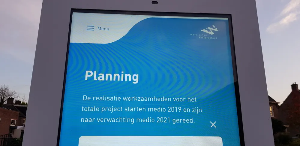 Een mooi nieuw informatiezuil heeft een plekje gekregen in Zetten. Een interactief bord waarbij je op op teksten kunt tikken zodat er meer informatie wordt gegeven. Werkzaamheden, planning, nieuws, beeldmateriaal en de contactgegevens staan er allemaal op. De informatie is nog niet heel uitgebreid. Soms loopt het bord nog vast.