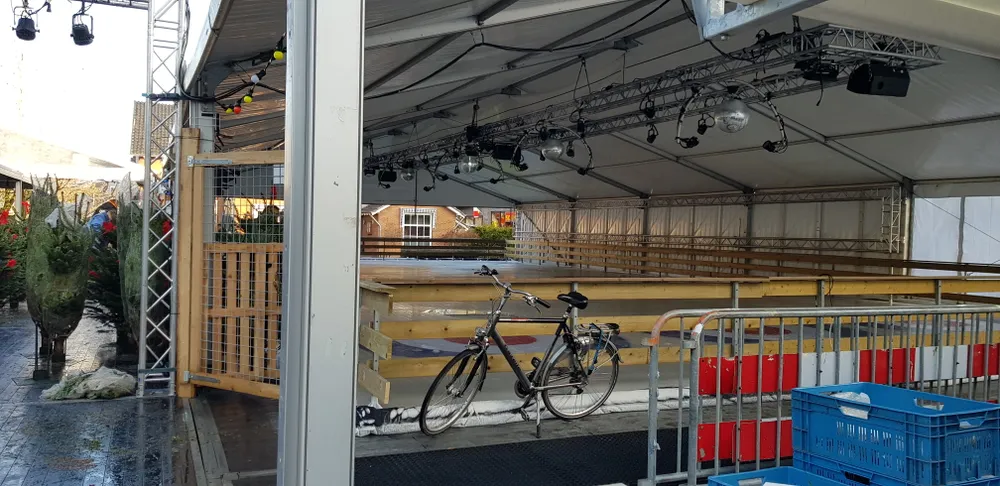 De mannen van de technische dienst hebben hard gewerkt om de ijsbaan en het wintercafé af te krijgen. Het moet vandaag allemaal in orde zijn want morgen begint de dertiende editie van het Winterfestijn.