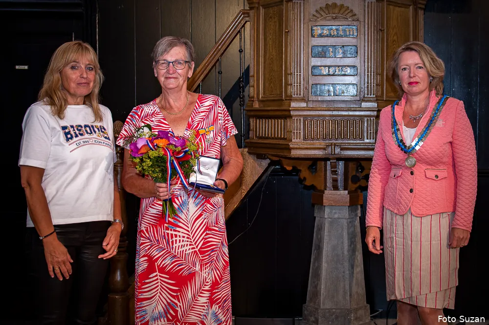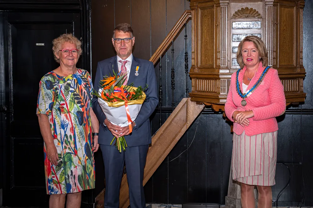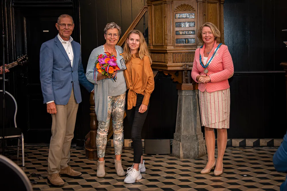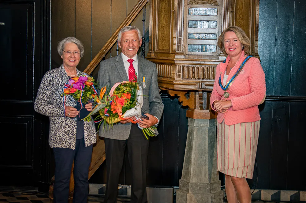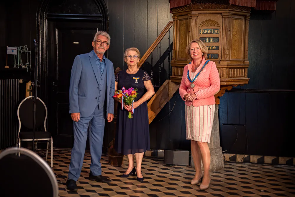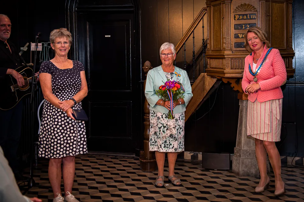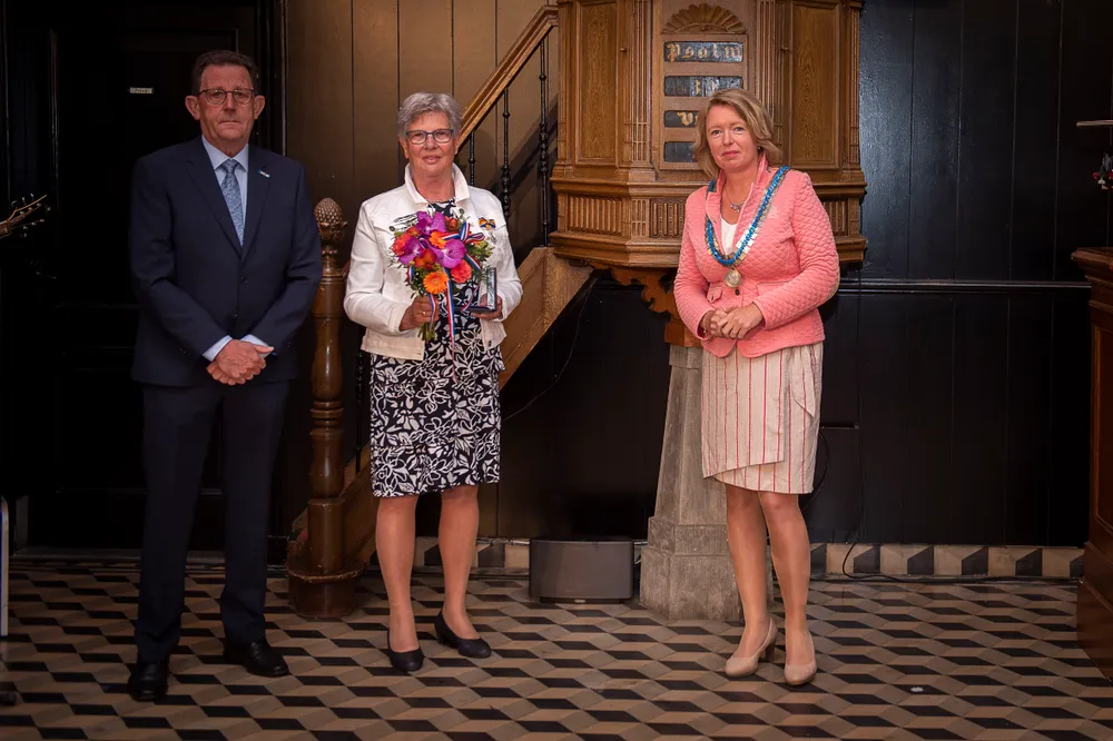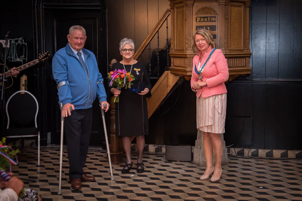 SLIJK-EWIJK- Burgemeester Patricia Hoytink-Roubos overhandigde op 2 en 3 juli aan dertien inwoners van Overbetuwe en één inwoner van de gemeente Neder-Betuwe de versierselen horende bij de benoeming tot Lid in de Orde van Oranje-Nassau.