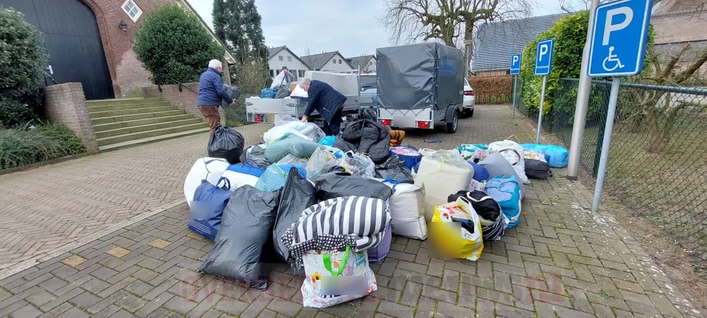 Uiteindelijk leverde het vier aanhangers vol op die 's middags naar het inzamelpunt in Apeldoorn zijn gebracht. Van daaruit gaan ze naar de grens tussen Polen en de Oekraïne. Diverse matrassen gingen mee, stapels met kleding en dekens. Er was ook gedacht aan toiletspullen, handdoeken, medicijnen en er zat zelfs een knuffel tussen. Met dank aan de gulle gevers die hiermee de vluchtelingen willen helpen.