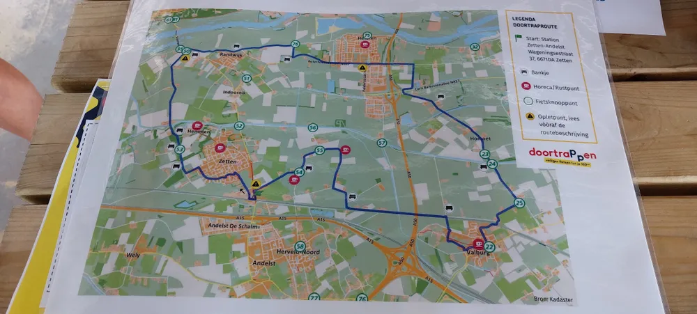De routes zijn mooi en groen. Ze gaan zoveel mogelijk over ruime paden, rustige wegen, overzichtelijke kruispunten en kennen weinig obstakels. De Doortraproute begint op het treinstation in Zetten, zodat ook mensen zonder auto mee kunnen fietsen. De doortraproute Zetten komt door Zetten, Valburg, Homoet, Heteren, Randwijk en Hemmen. Omdat het een fietsronde is kan je op elk gewenst punt van de route starten. Binnenkort is de nieuwe doortraproute te vinden op Fietsersbond en in de app Routeplanner.