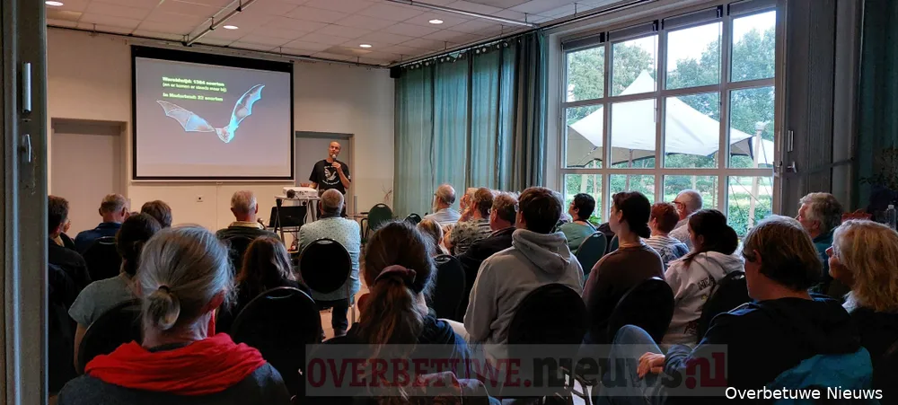 De zaal van hetdorpshuis De Oude Schoolwas gevuld met nieuwsgierige bezoekers die allemaal meer wilde weten over de vleermuis. Hans wist veel te vertellen over deze mysterieuze zoogdiertjes. Dat ze paren in de herfst en hun jongen krijgen in de lente. Dat de vrouwtjes samen in een holte bij elkaar leven maar de mannetjes vaak solitair of in een kleine groep overleven. Een aantal vleermuizen zijn (in Nederland) al uitgestorven omdat hun leefgebied is vernietigd.