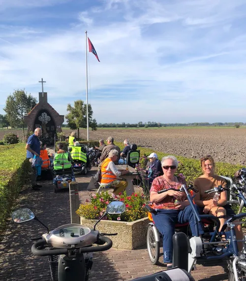 Een jubileumtocht! Iedereen die mee wil rijden is van harte welkom. Dat kan per scootmobiel, elke aangepaste fiets, driewielfiets, tandem, duo fiets of rolstoel. Je begeleider mag uiteraard ook mee.